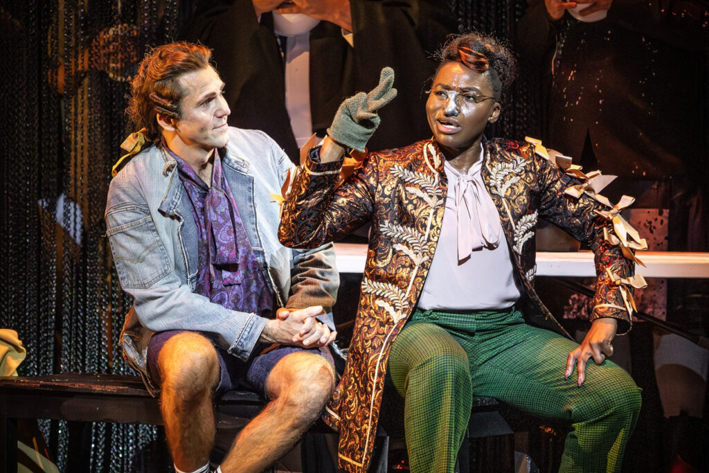 Rakie Ayola is well-defined as Dr. Pangloss and well projected as the story-telling narrator. A clear-voiced Amy J Payne impresses as the Old Woman and dispatching ‘I Am Easily Assimilated’ and aplomb and (in this revival) avoiding any complications over a missing left buttock. Elsewhere, Francesca Saracino is easy on the eye and ear as Paquette, Jack Holton amuses as the cross-dressing Maximillian, while Aled Hall almost steals the show as the rapacious Mexican Governor.