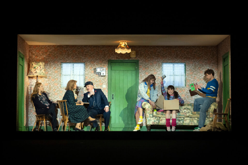 Happily, this new operatic venture conceived during the 2020 lockdown as a collaboration between Mark Anthony Turnage and Rachael Hewer retains the essence of the original narrative. Inevitably, it’s not without change with some compression here and inflation there, yet the focus remains on the children. Gone is the schoolboy paperchase, Perks’s birthday celebration and the canal boat fire, while the mother (now called Cathy and very much a working parent) is given a friend Yolanda both of whom are undercover agents for British Intelligence. Together, they seek to discover why the children’s father has been wrongly arrested for treason. For these tensions to resolve Hewer removes much of the nostalgia and transplants the original Edwardian setting to the 1980s, where echoes of John Le Carré-style espionage are implicit in this spy thriller interpretation, including a moment with a poisoned umbrella.