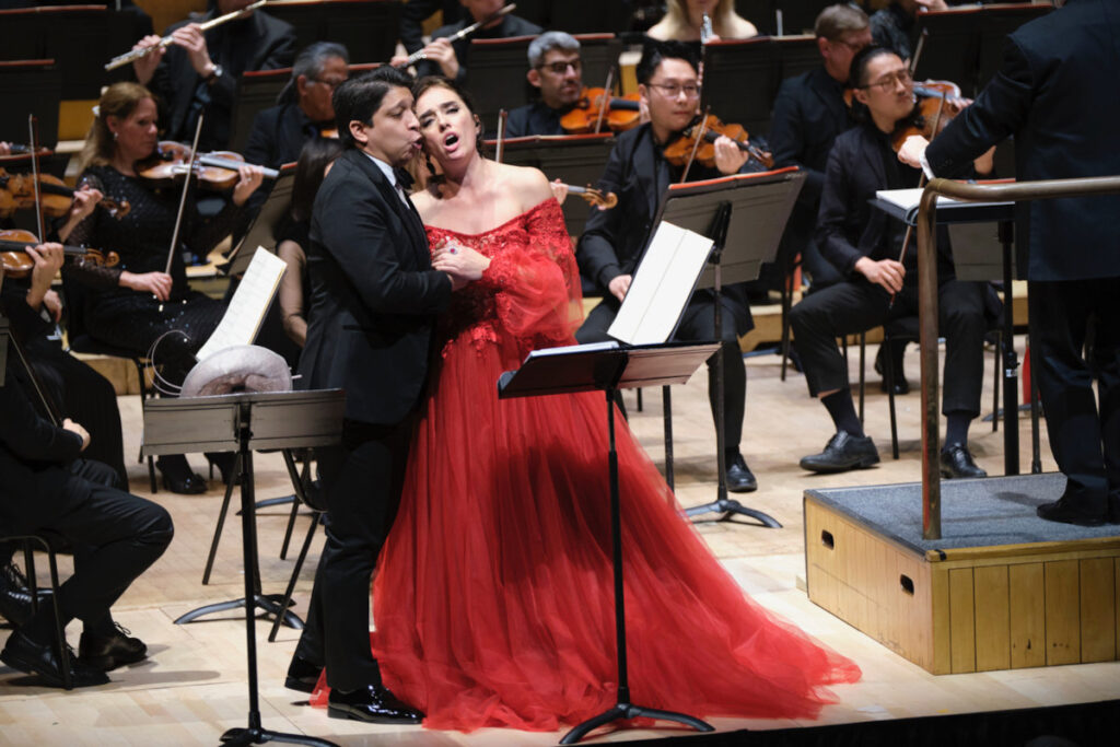 Soprano Ermonela Jaho is very associated with the role of Magda in the standard version – so there was a real sense of presenting something different, but simultaneously familiar. She is also no stranger to Opera Rara; try her recent two-disc, astonishing set of Donizetti Songs (with the present conductor, Carlo Rizzi, on piano).  Her voice can produce the most breathtaking floated notes, and yet she has the power to be heard over Puccini’s orchestra going at forte and beyond. Most of all, we believe her character and Magda’s emotions: the end really is heart-wrenching, underpinned by Puccini’s darker scoring. Magda has to move from operetta, effectively, through to tragedy (a trajectory not a million miles from Violetta in Verdi Traviata, of course, but realised very differently by Puccini). Jaho has the full spectrum of emotion: and Puccini pretty much asks fo it all.